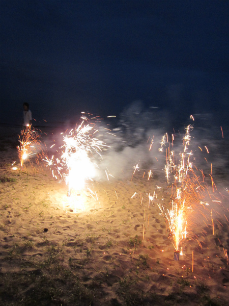 夕暮れから砂浜で花火 これぞまさに日本の夏!