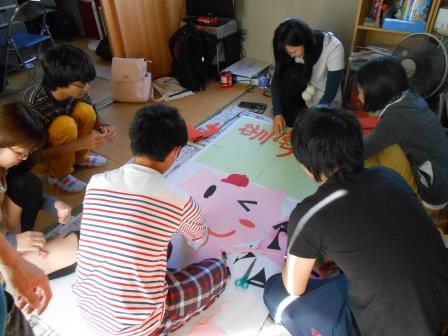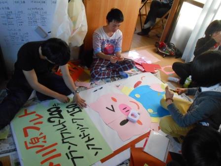 また、CM収録をする一方で自分たちの模擬店の看板作りもしていました。