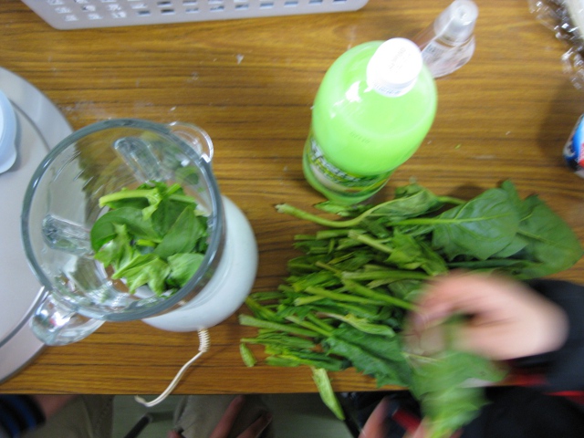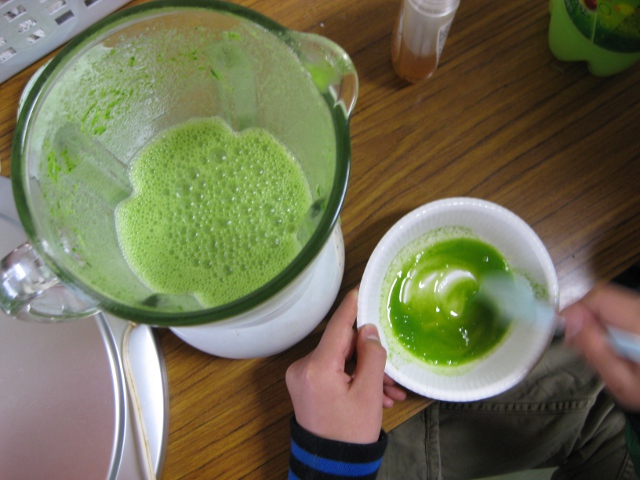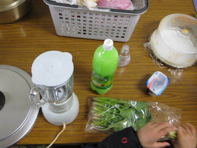 材料はメロンソーダ、ヨーグルト、はちみつ、ホウレンソウ(予定ではシイタケもありましたが生はダメだという大人の判断でやめました)
