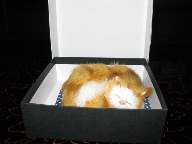 片付け中に段ボールで遊ぶセピアさん。段ボールから「この面(ツラ)」と言われるほど顔が疲れきってます。