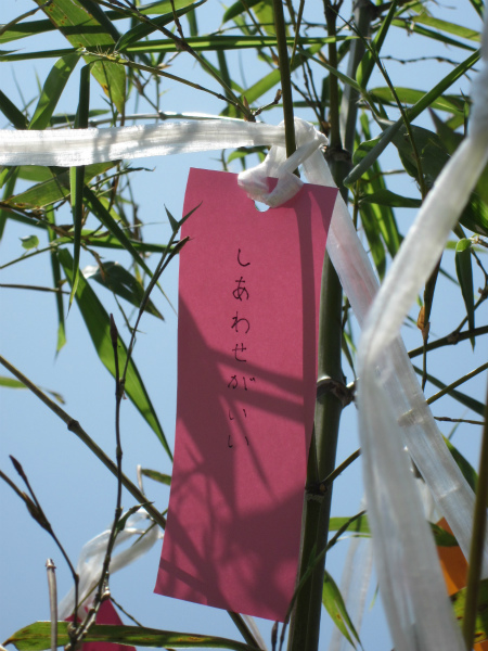 こういう風に短冊にお願いごとを書いてザ・七夕って雰囲気です