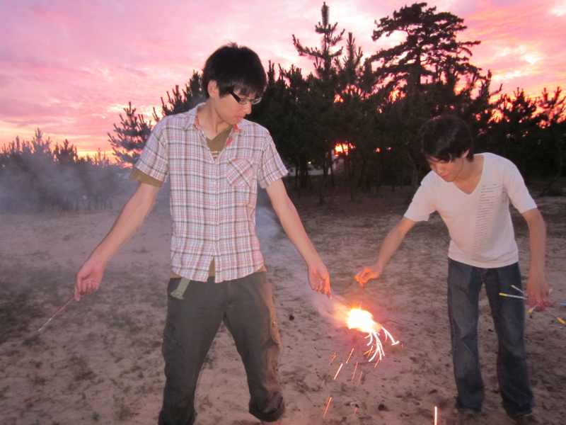 夕暮れから砂浜で花火 これぞまさに日本の夏!
