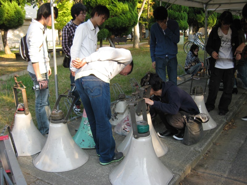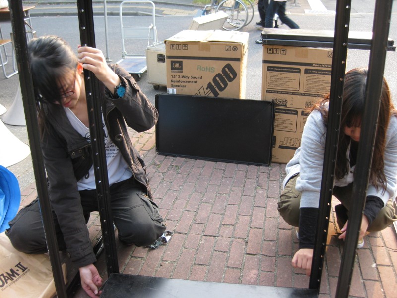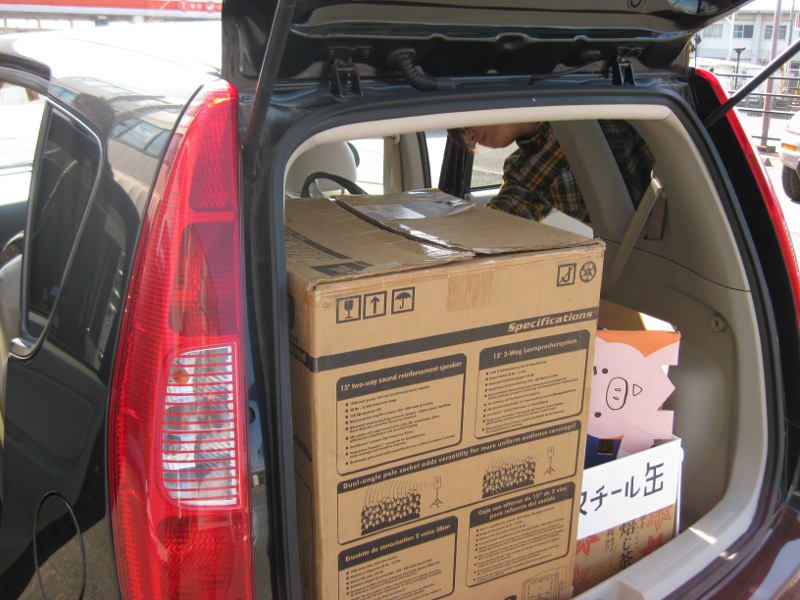 そしてお借りしたラッパスピーカーを学内に設置ー