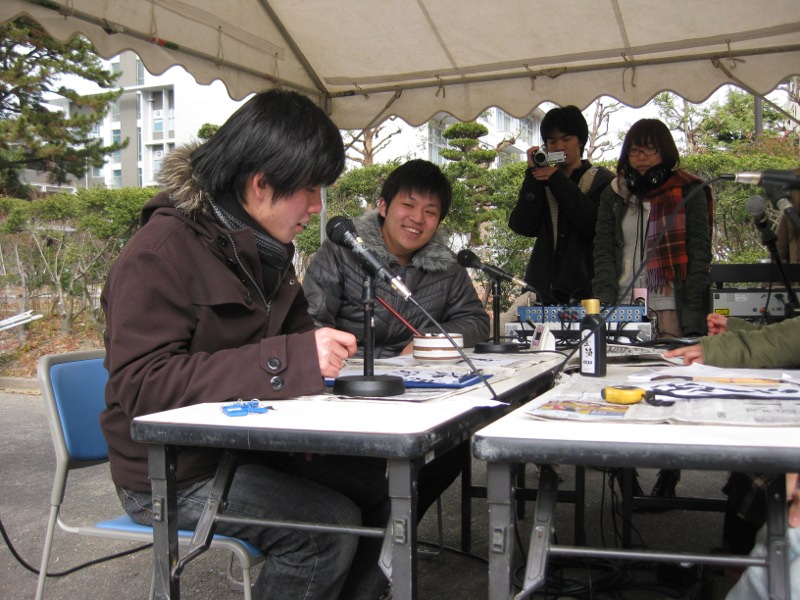 一日目の放送が終わって空も暗くなってからもみなさんカメラを向けると笑ってくれましたー