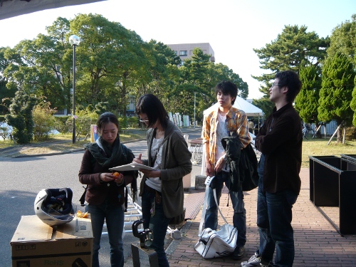 三つの班に分かれて放送と模擬店と空き時間を役割分担していました。
