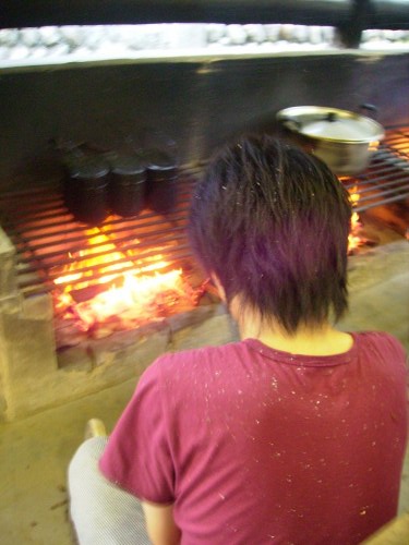 男の子たちは火をおこします。