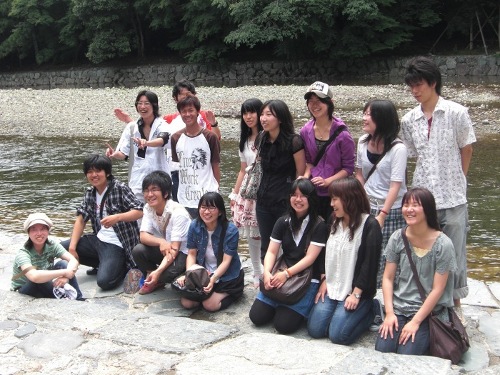 恒例の川のところでの新入生の写真です。